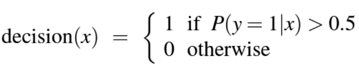 -> P(y=0) 은 입력값 x가 y=0으로 분류될 확률