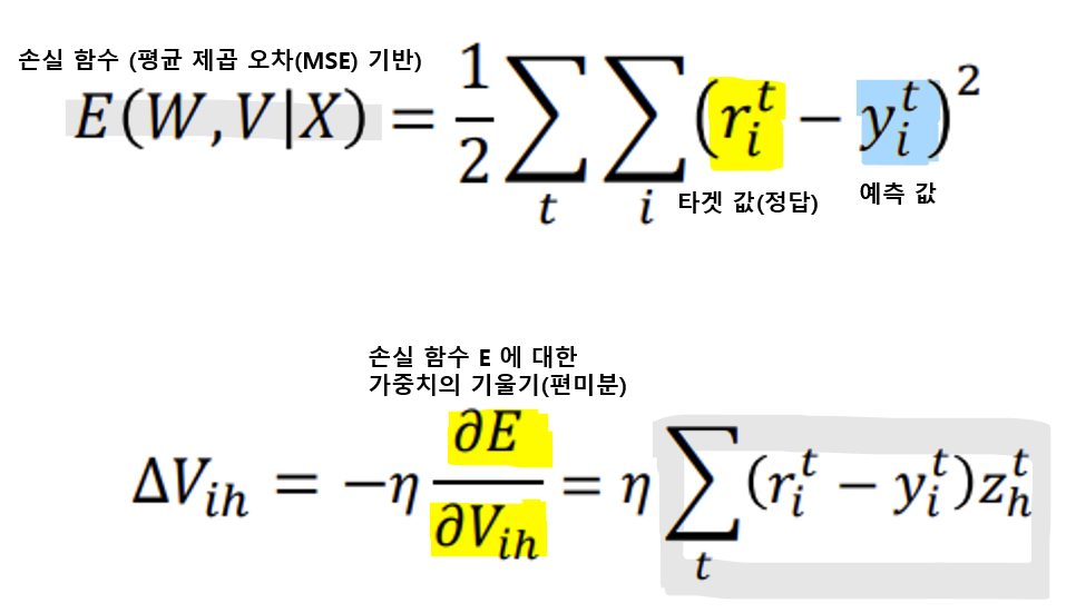 - Output layer의 가중치 V ih를 먼저 업데이트