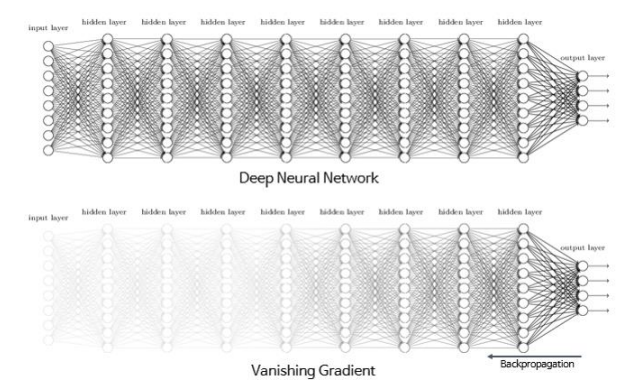 : 신경망 학습 과정에서 기울기가 점점 작아져서 0에 가까워지는 현상, 주로 Deep neural networks에서 발생