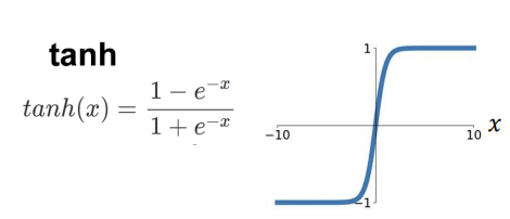 -Tanh 함수: 출력 범위가 −1에서 1 사이이므로, 입력이 극단적인 경우 기울기 값이 작아지는 포화 상태가 발생할 수 있음