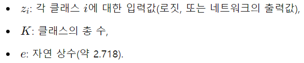 -> 입력값 zi를 각각의 클래스가 선택될 확률로 변환해줌