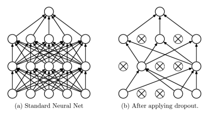 : 훈련 중에 신경망의 유닛(노드)와 그 연결을 무작위로 제거함