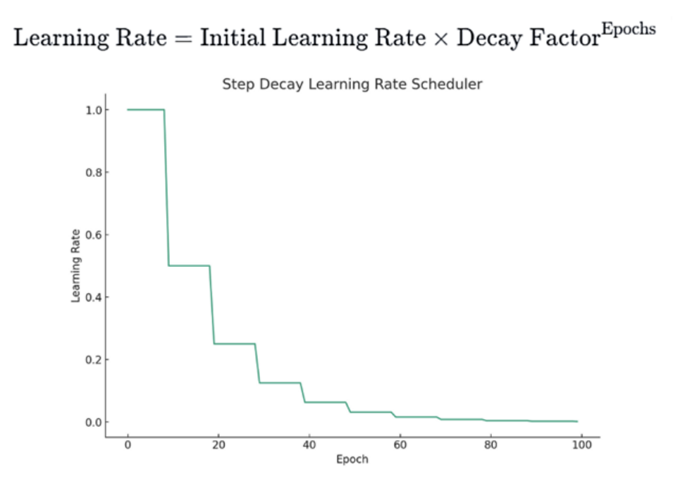 -> 몇 Epoch마다 learning rate을 일정 비율로 감소시키는 방식