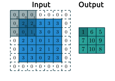 : 짝수보다 홀수 크기가 선호됨 (출력 픽셀 주위에 모든 입력 픽셀이 고르게 배치되는 좋은 기하학적 특성이 있음, 중심 픽셀 존재, 대칭성 존재)