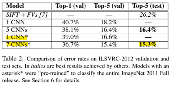 -> ILSVRC 2012에서 사전 학습된 모델을 미세 조정(Fine-tuning)하는 것은 성능을 향상시킴 (오류율 감소함)