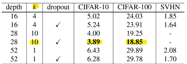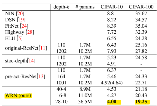 : 50 layers의 넓은 ResNet이 152 layers의 original ResNet을 능가함