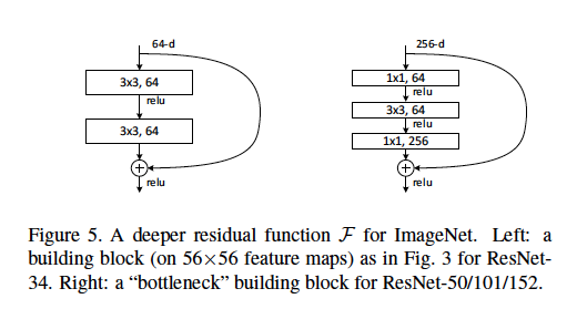 : 1x1 layer를 추가하여 차원을 줄이고 늘림으로써, 3x3 layer는 더 작은 입력/출력 차원을 가진 병목 지점(bottleneck)이 됨