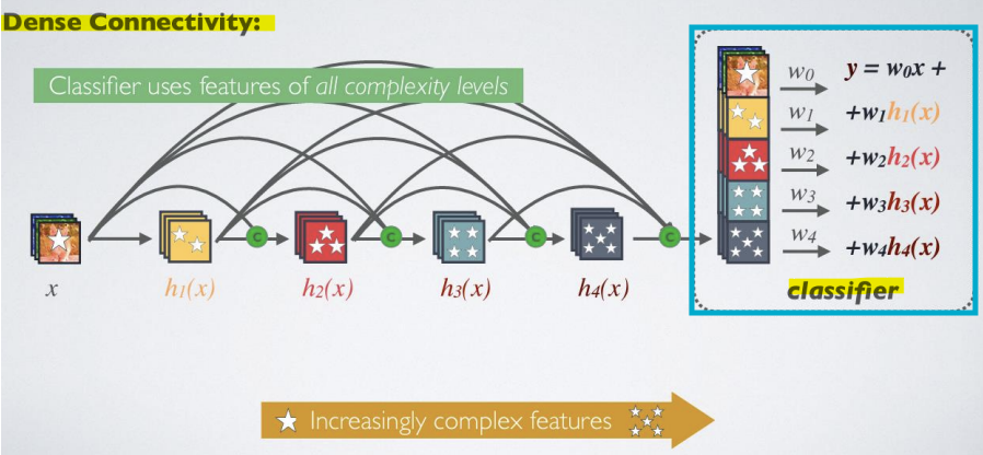 -> 모든 레이어에서 이후의 모든 레이어로 직접 연결을 도입