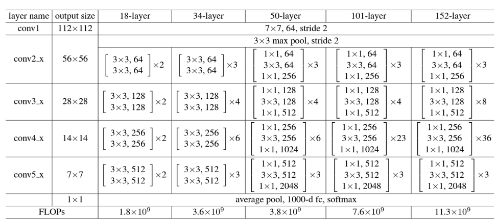 : 18/34/50/101/152 layers