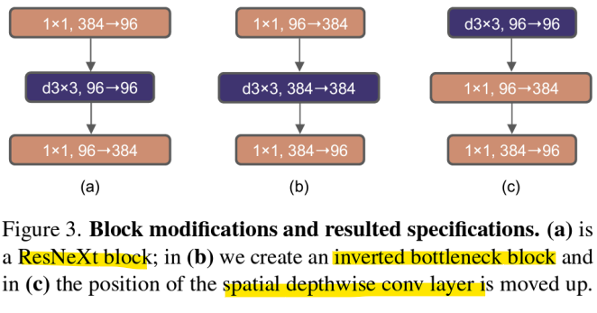 Inverted Bottleneck -> 채널 수를 먼저 확장한 후에 차원을 줄이는 방식으로 설계