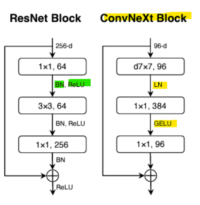 ConvNeXt는 CNN의 전통적인 구조를 현대화하여, ViT와 같은 최신 비전 모델과 경쟁할 수 있도록 설계됨