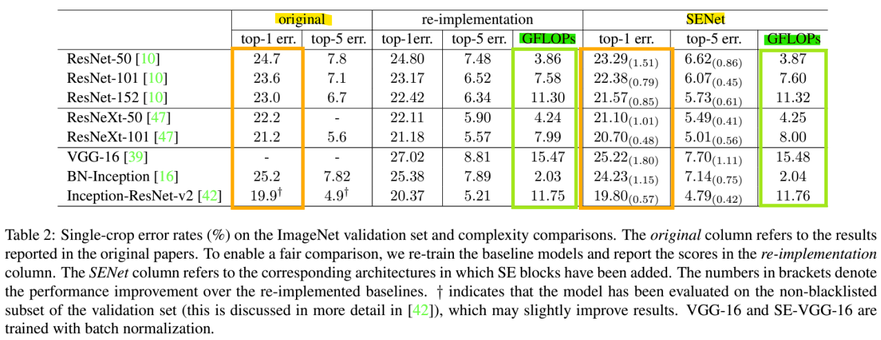 -> SE Block을 추가한 모델의 error율이 더 작음