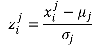 -> j번째 속성이 평균 𝜇𝑗와 표준편차 𝜎𝑗를 가질 때