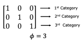 -> One-hot Encoding -> 각 범주는 𝜙차원의 지시 벡터(indecator vector)로 변환