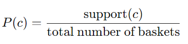 -> 보통 전체 baskets의 수에 대한 비율(fraction)로 표현함