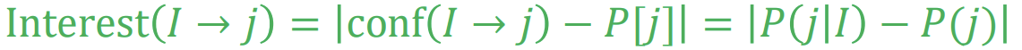 -> 절댓값을 사용하는 이유: 아이템 집합과 아이템 간의 긍정적 및 부정적 연관성을 모두 포착하기 위해서