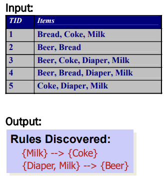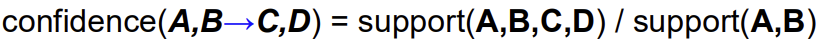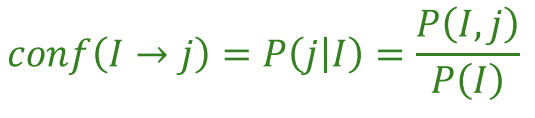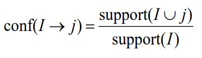 -> 만약 {i1, i2,..., ik} -> j 의 support와 confidence값이 높다면,