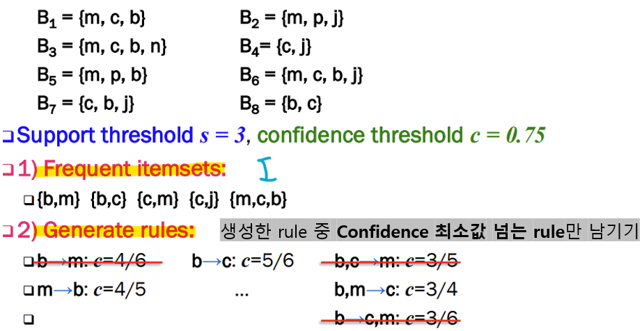-> 생성한 rule 중에서 confidence threshold를 넘는 rule만 출력하기