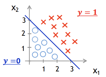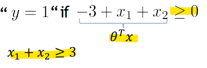 -> x1 + x2 = 3이 Decision boundary가 됨