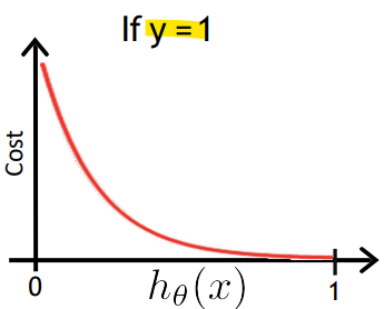 : 예측 값 h(x)가 1에 가까울수록 손실이 0에 가까워짐