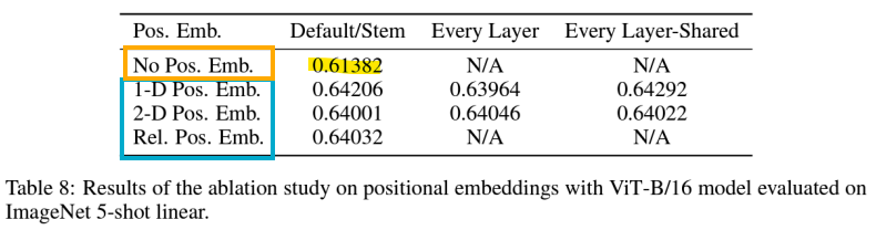 -> positional embedding이 없는 모델과 있는 모델의 성능 사이에는 큰 차이 O