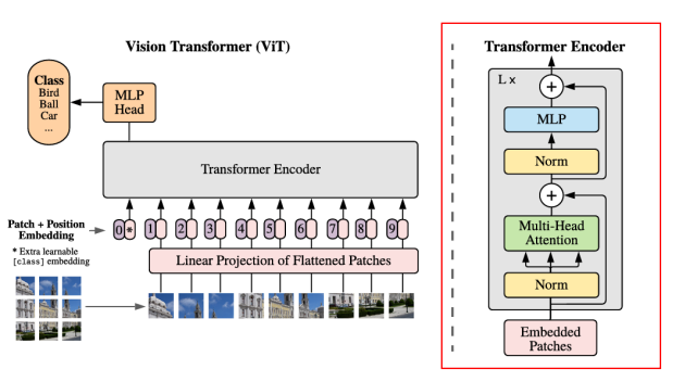 -> Transformer encoder에서 나온 CLS token을 사용하여 MLP layer에서 분류 작업을 수행
