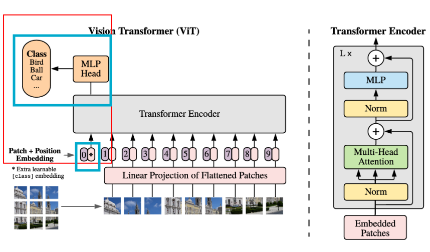 -> 입력 이미지 시퀀스 맨 앞에 CLS token이 추가됨