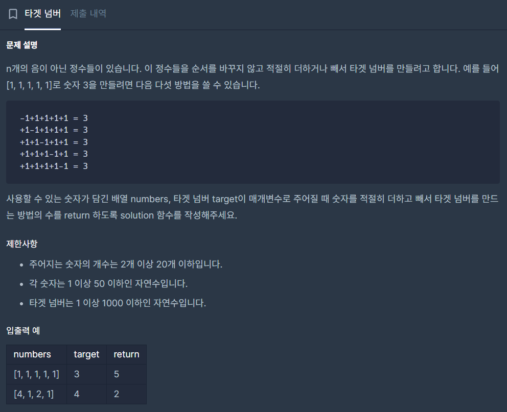 elif idx == len(numbers) and val != target: # 끝까지 다 계산했는데 target값과 다르다면
