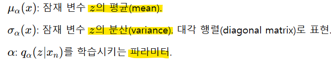 - 관찰 데이터 xn에서 잠재 변수 z를 추출하는 역할