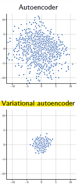 : VAE는 연속적이고 구조화된 잠재 공간을 강제하여, 데이터 간의 부드러운 보간(smooth interpolation)을 가능하게 함