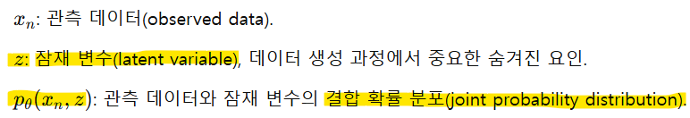 But, 우리가 실제로 최대화하려는 것은 관찰 데이터 xn에 대한 로그 가능도(log-likelihood)