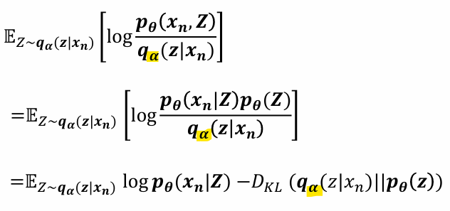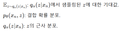 -> 인코더와 마찬가지로, 𝒒𝜶(𝒛|𝒙𝒏)는 z가 xn로부터 잘 decoding될 가능성을 최대화해야 함