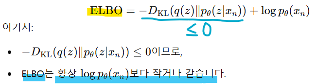-> 즉, ELBO를 최대화하는 것 -> 로그 가능도를 최대화하는 간접적인 방법