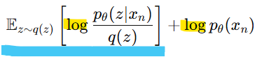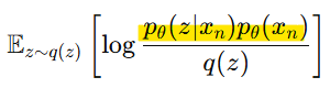 그래서 p(x)를 최대화하려면, q(z)로부터 샘플링된 z에 대해 다음값을 최대화하면 됨