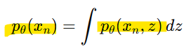 -> p(x)를 계산하려면 z를 적분해야 함(적분 과정에서 잠재 변수의 모든 가능한 값에 대해 확률을 합산해야 함)