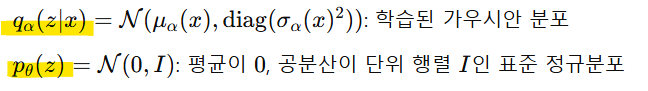 - 샘플링이 쉬움: q(z)는 단순 형태(가우시안 분포)를 사용하므로 샘플링이 쉽고 효율적