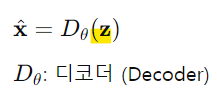 -> 잠재 표현 z의 차원은 입력 데이터 x의 차원보다 작아져 information bottleneck(정보 병목) 역할을 함