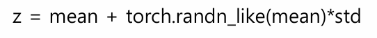 -> z의 샘플링을 평균(mean)과 표준편차(std)를 사용하여 구현하면, 확률적 변수의 샘플링을 미분 가능하게 만들어서 alpha or theta에 대한 gradient를 계산할 수 있음. 신경망의 학습에서 사용됨