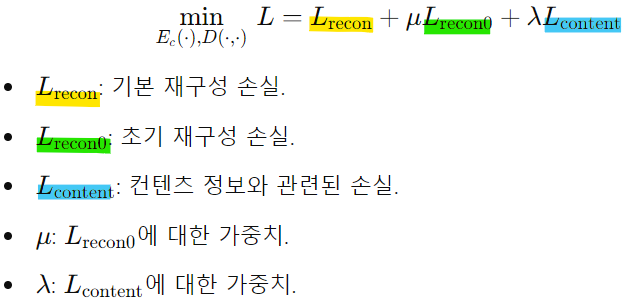 3) 스타일 정보와의 분리 및 손실 간의 균형 조절할 수 있게 학습