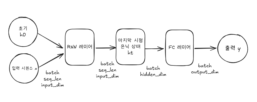 # 매 forward마다 0으로 초기화. 상태를 이어가고 싶으면 이전 hn을 넘겨도 됨.