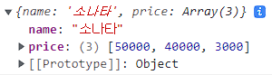 var car2 = { name: '소나타', price: [50000, 40000, 3000] }