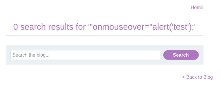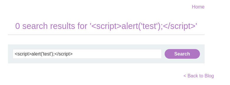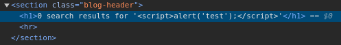 blog 검색 기능에 취약점이 존재하며 꺽쇠 기호(<,>)는 HTML 인코딩이 수행된다. 이 LAB을 해결하기 위해서는 HTML 속성을 사용해 alert() 함수를 호출해야한다.