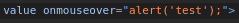 "onmouseover="alert('test');
