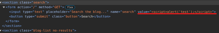 value="<script>alert('test');</script>"
