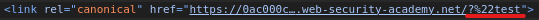 https://0ac000cf0301665f822c06a700b60050.web-security-academy.net/?"test