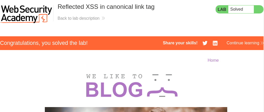 이 LAB은 유저의 입력을 canonical link tag에 반영하고 꺽쇠기호(<,>)를 이스케이프 처리합니다.