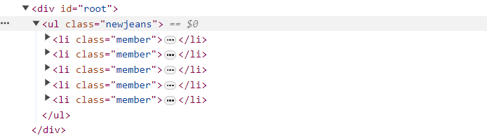 const danielle = React.createElement('li', { class: 'member' }, '다니엘')