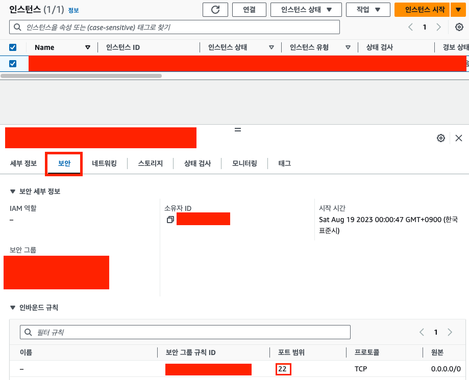 이것은 보안 그룹의 인바운드 규칙에 22번 포트가 열립니다.