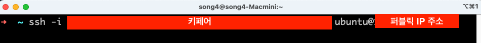 ssh -i {생성된 키페어 드래그앤드롭} ubuntu@{퍼블릭 IPv4 주소}