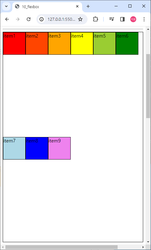 item을 여러 줄로 배치(뒤에서 배치)